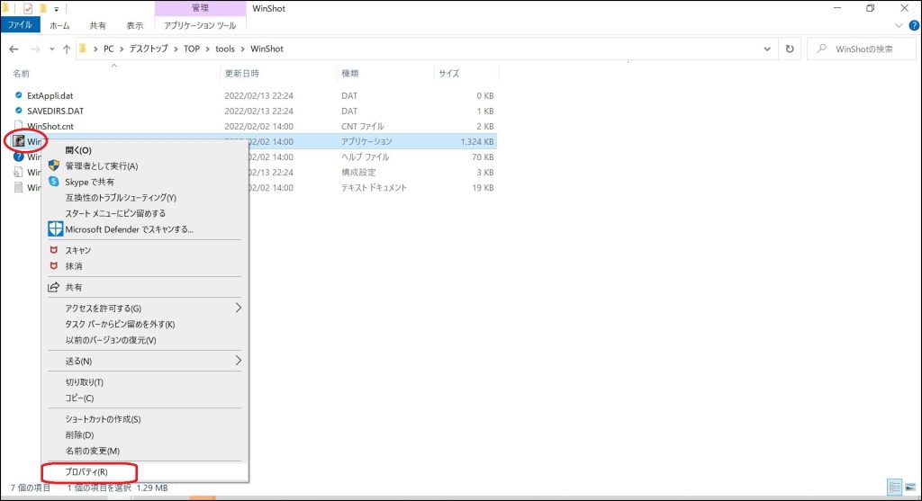 WinShotのプロパティを開く
